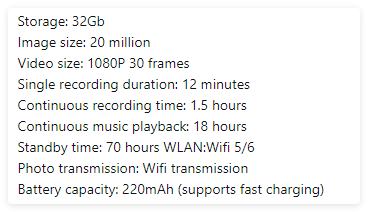 Smart Glasses w/ AI Camera Chip
